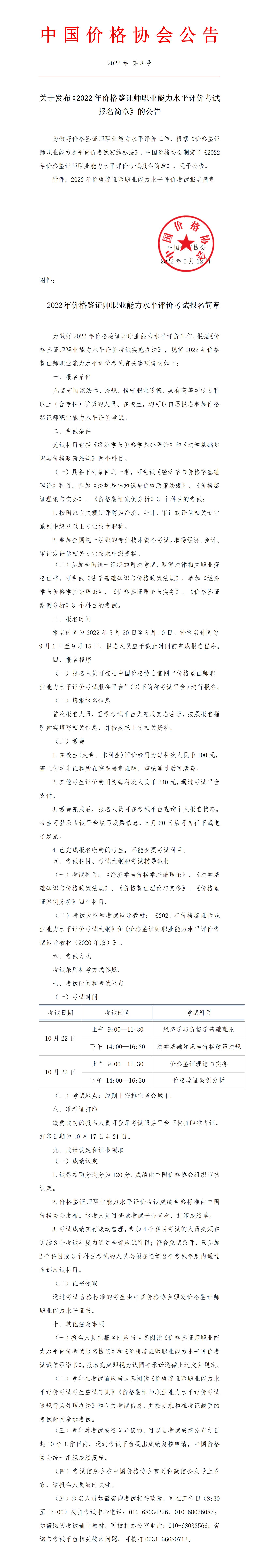 > 关于发布《2022年价格鉴证师职业能力水平评价考试报名简章》的公告