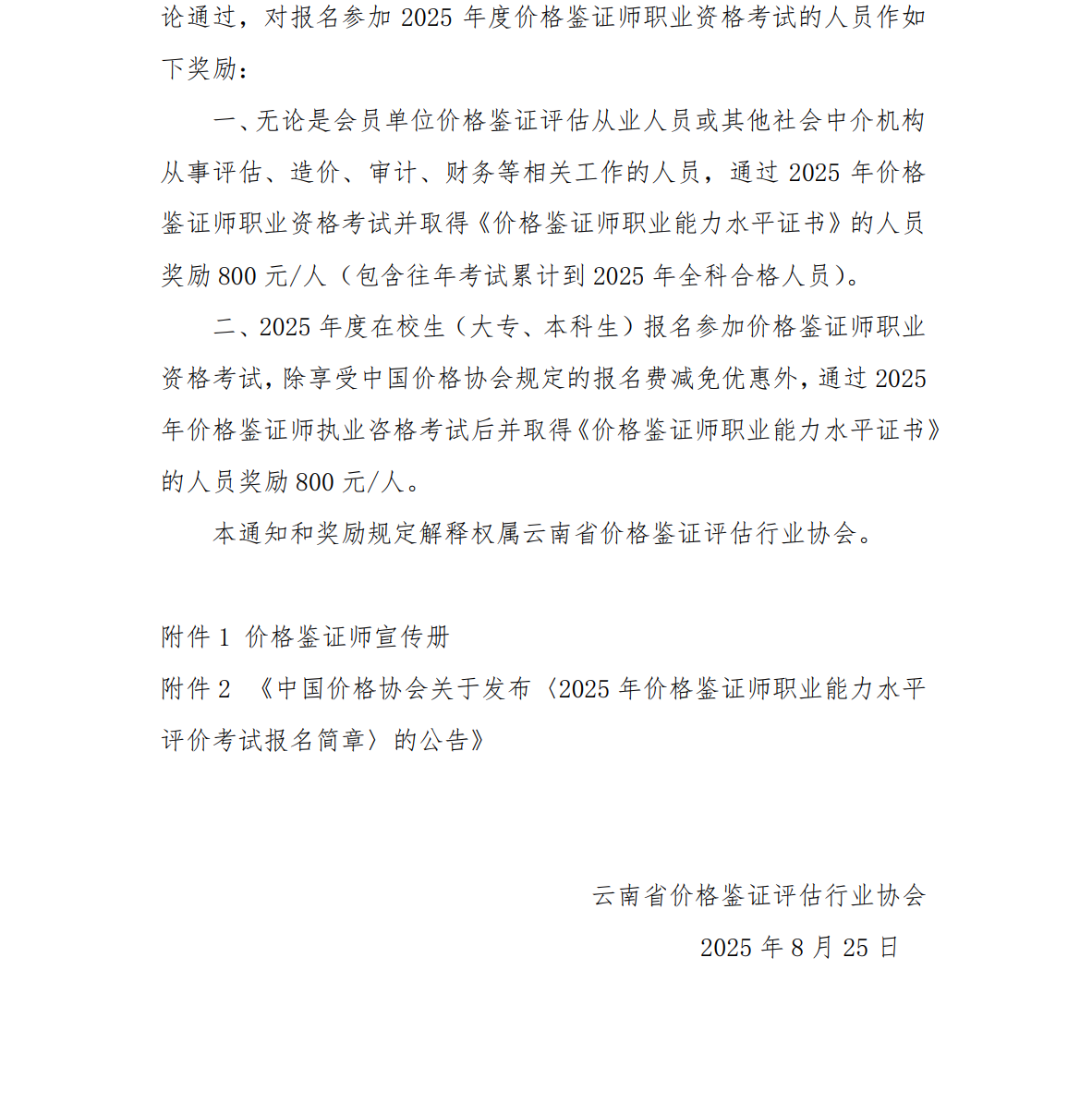 云南省价格鉴证评估行业协会关于鼓励从业人员积极参加价格鉴证师职业资格考试的通知