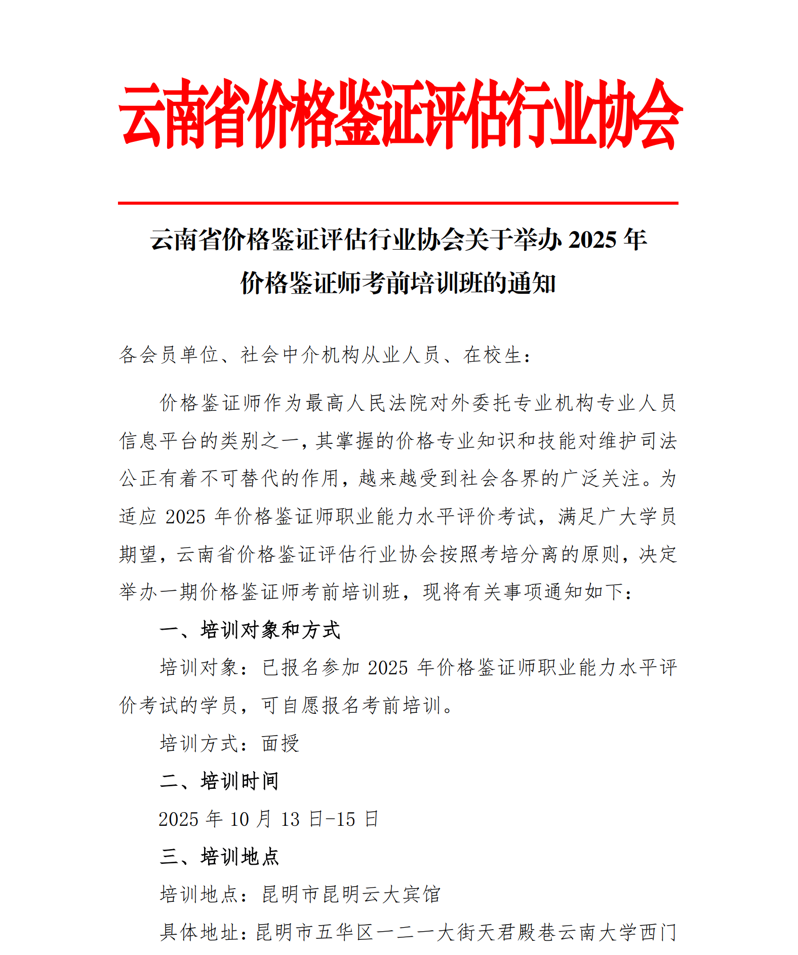 > 关于举办2025年价格鉴证师考前培训班的通知
