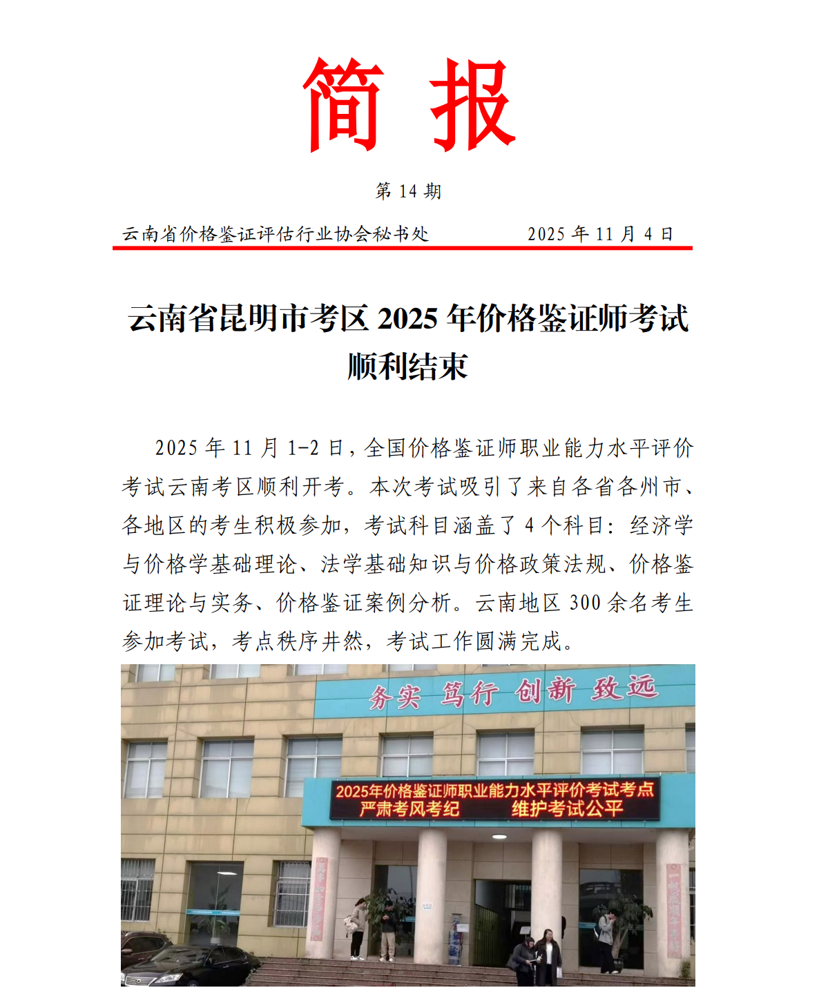 简报第14期 云南省昆明市考区2025年价格鉴证师考试顺利结束