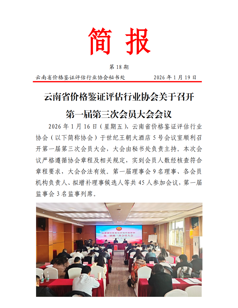 > 简报第18期 关于召开第一届第三次会员大会会议