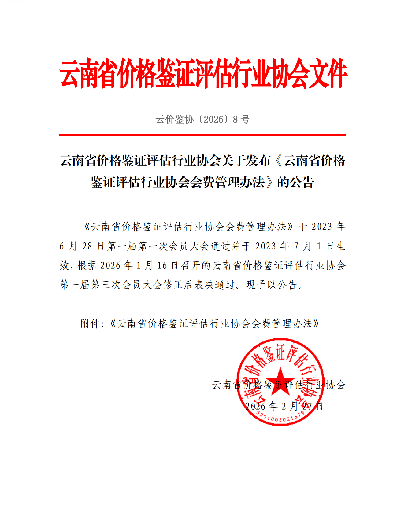 关于发布《云南省价格鉴证评估行业协会会费管理办法》的公告