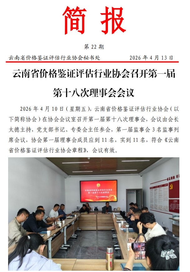 > 云南省价格鉴证评估行业协会召开第一届第十八次理事会会议简报