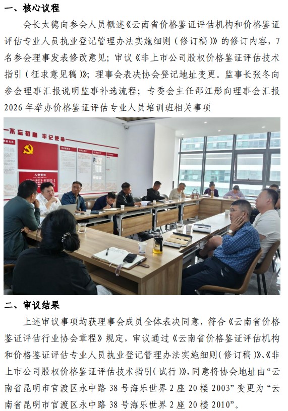 云南省价格鉴证评估行业协会召开第一届第十八次理事会会议简报