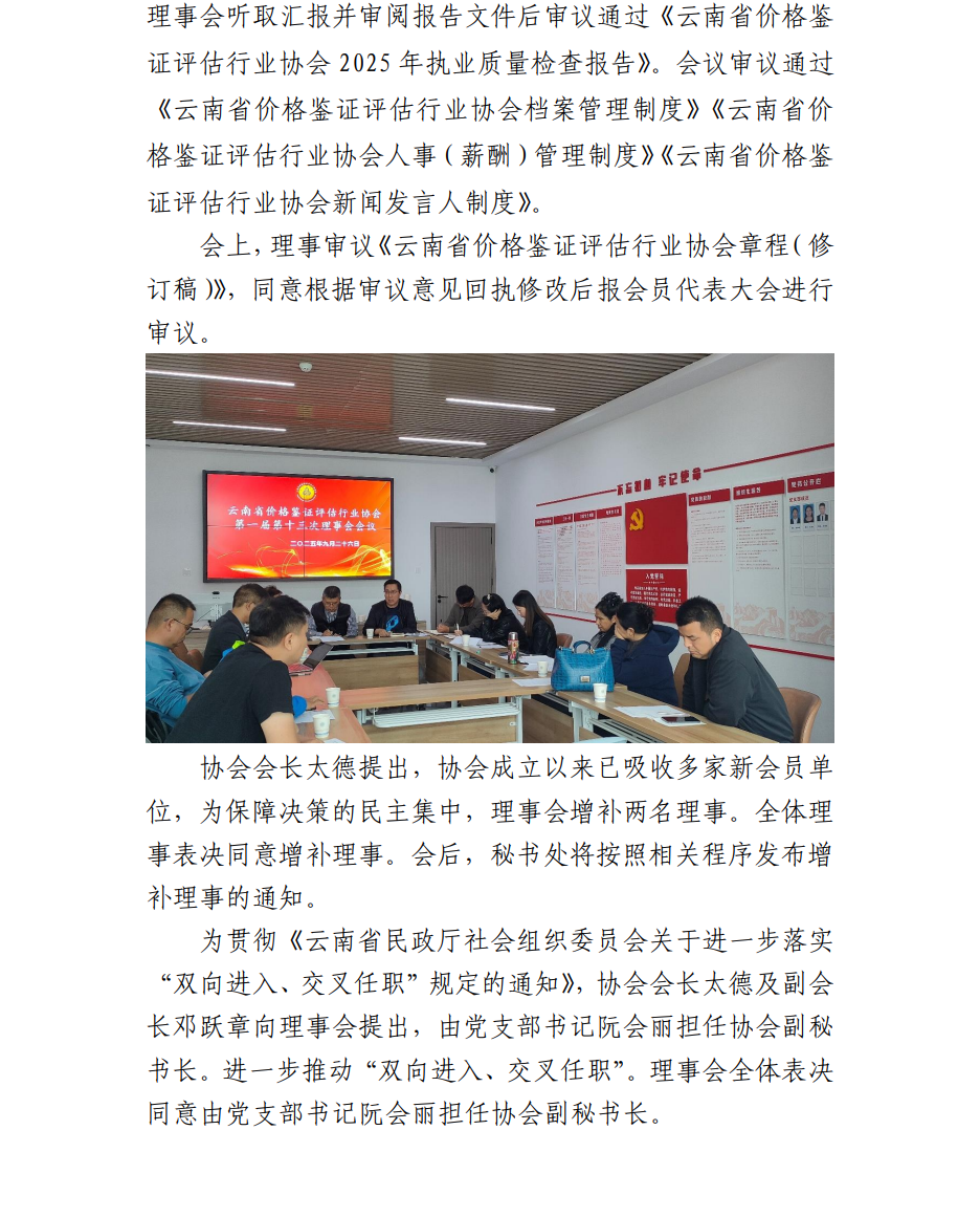 云南省价格鉴证评估行业协会召开第一届第十三次理事会会议简报