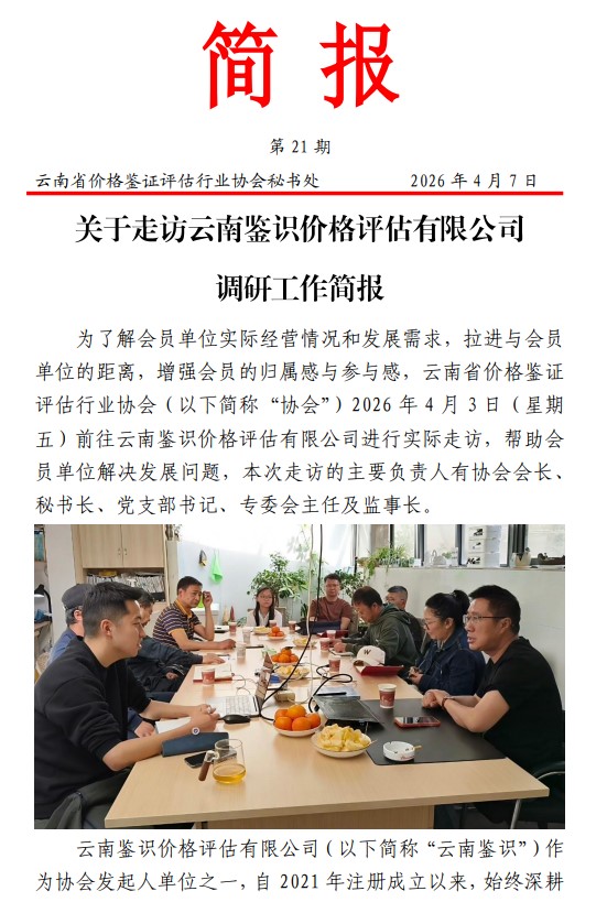 关于走访云南鉴识价格评估有限公司调研工作简报